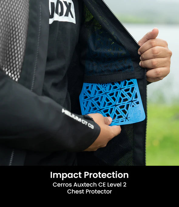· Chest: Cerros Auxtech Level 2 protectors, certified to CE standard EN 1621-3:2018