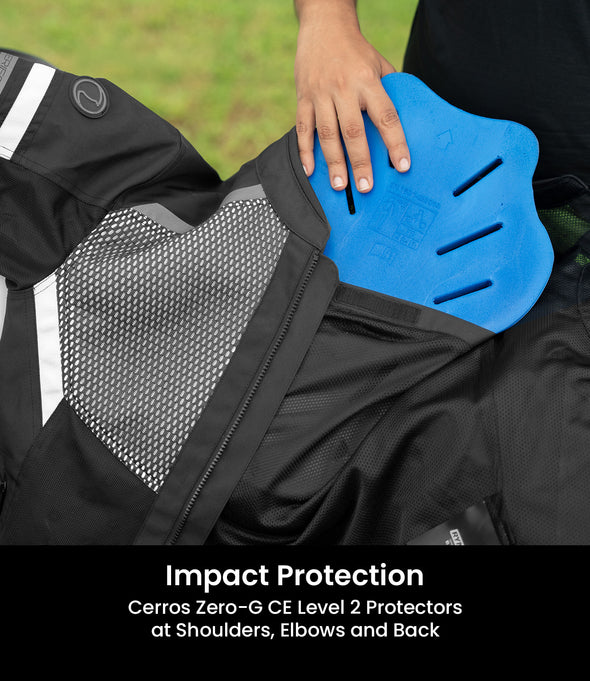 · Shoulder and Elbow: Cerros Zero-G Level 2 protectors, certified to CE standard EN 1621-1:2012