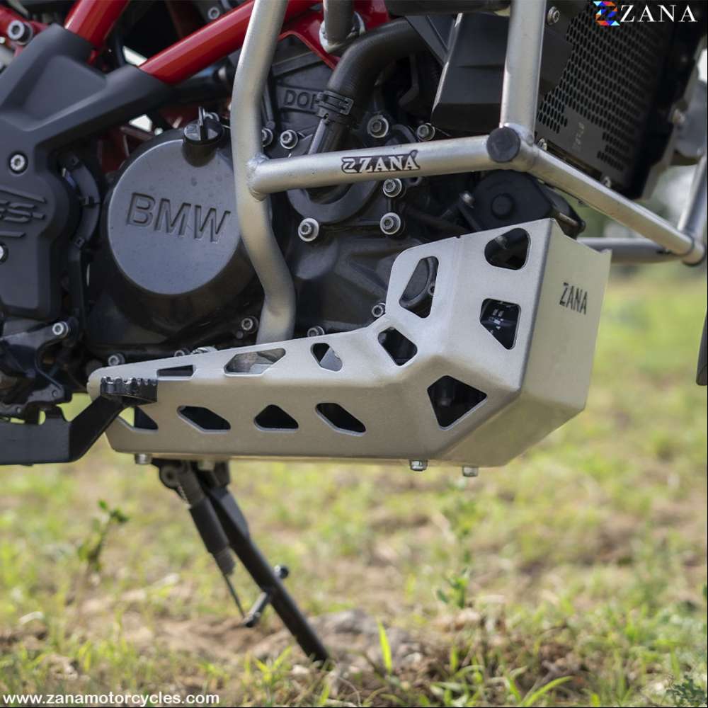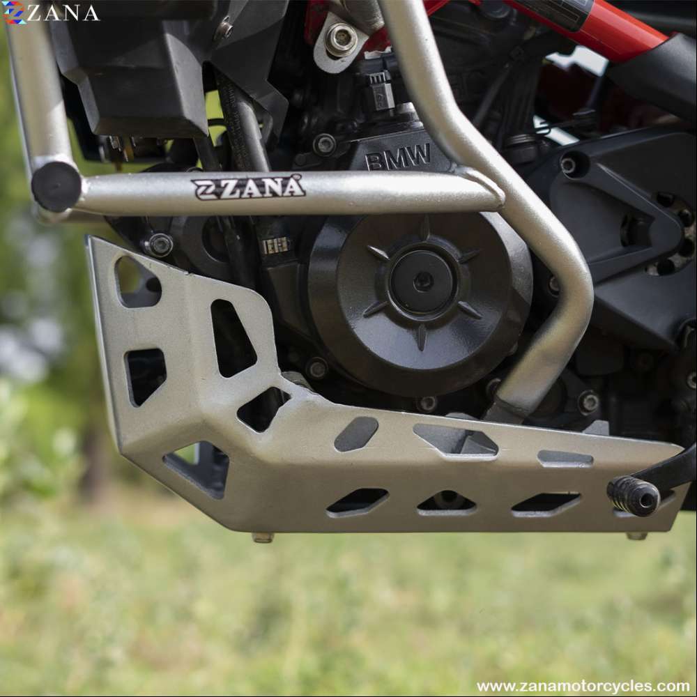 Sump Guard for BMW G310 GS offers full sump and engine protection. Compatible with OEM BMW crash bars and ZANA engine protector. Easy mount, superior to stock plastic, maintains ground clearance